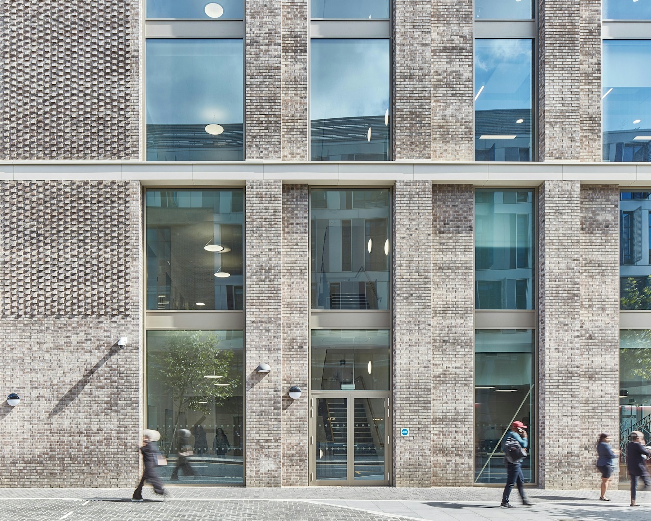 The finished project utilises brick piers and panels to frame large glass windows, along with protruding header details in the brickwork, to add a sense of depth and rhythm to the facades. These intricate design details can be observed by staff and visitors when using the roof terrace, as well as by local residents and passers-by at ground level.